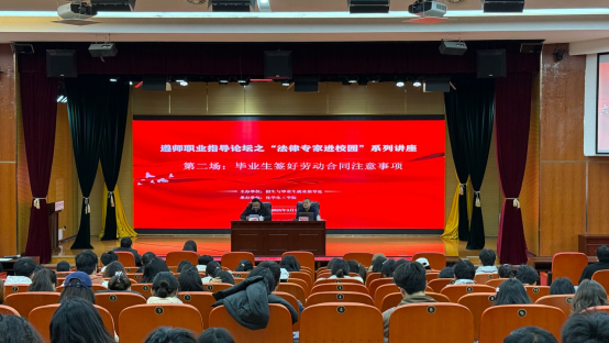 为深入学习贯彻党的二十大精神,全面落实党中央、国务院关于高校毕业生就业工作的决策部署,切实助力我校学生提升就业法律素养,深度洞察劳动合同签订过程中的关键要点,精准识别并有效规避就业路上潜藏的各类风险,顺利且稳健地开启职业生涯,我校举办“遵师职业指导论坛之法律专家进校园系列讲座”。第二场由化学化工学院承办,主题为“毕业生签好劳动合同注意事项”,于3月7日下午在学术交流中心二楼报告厅举行。